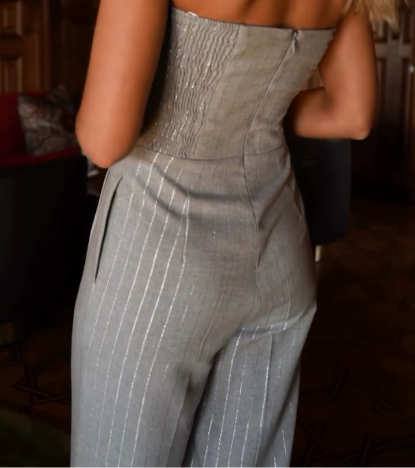Macacão Tomara Que Caia Alfaiataria Listrado Cinza