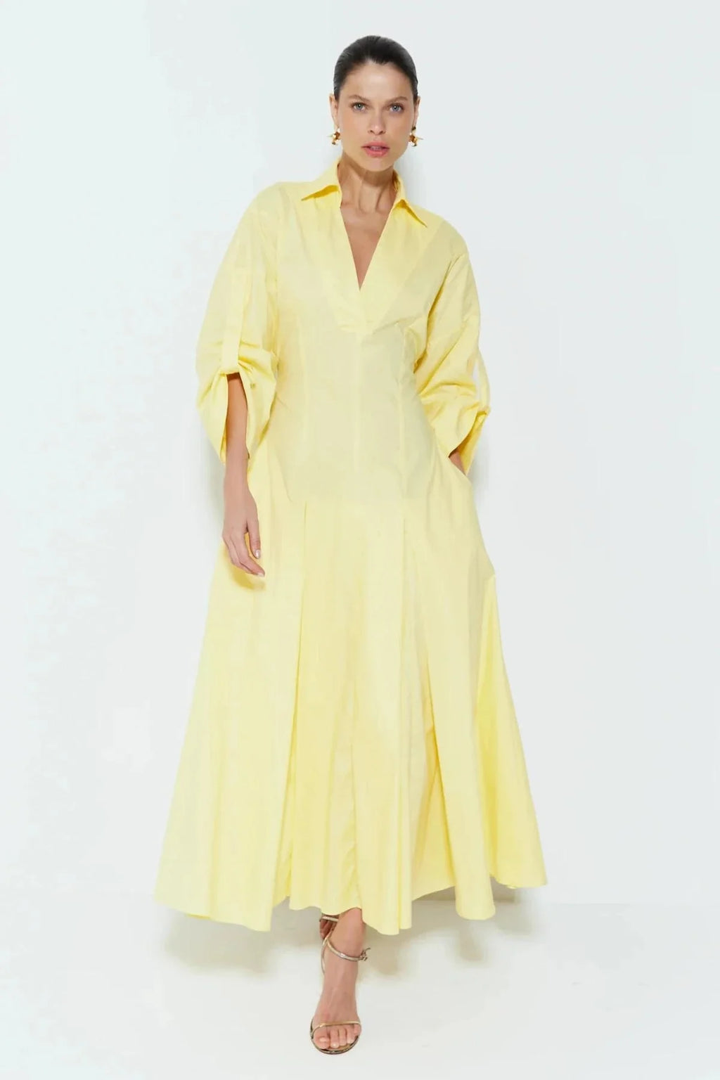 Transforme qualquer ocasião em um momento de estilo com o Vestido Chemise Longo Elegance Amarelo.