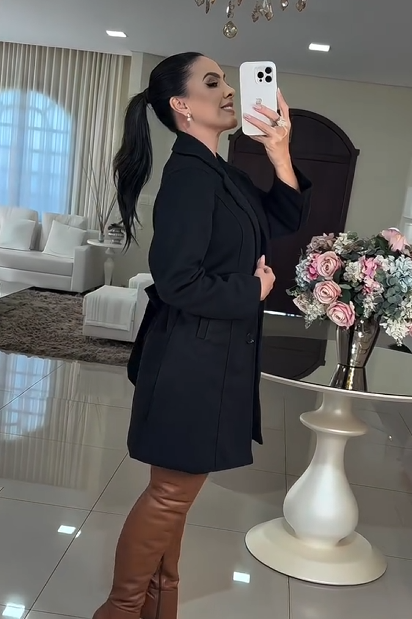 Elegância e versatilidade para os dias mais frios! Esse sobretudo preto tem modelagem reta, gola lapela e fechamento frontal discreto, ideal para compor looks sofisticados ou modernos. Pode ser usado aberto ou fechado, combinando com vestidos, saias ou jeans.