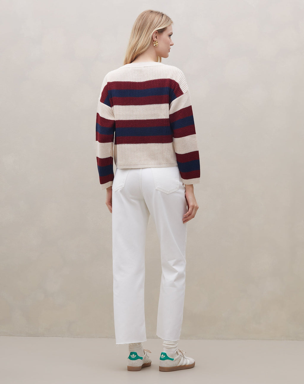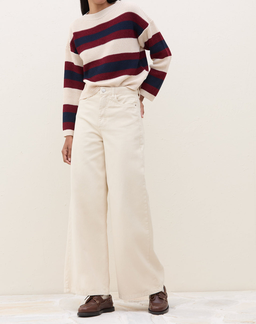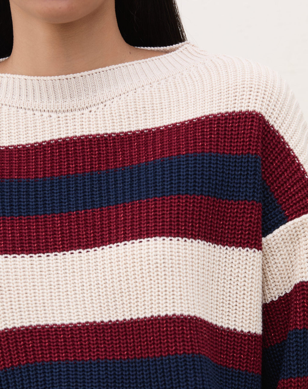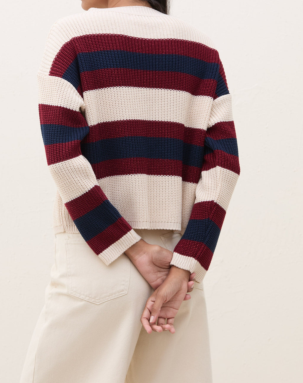 Suéter de Tricot Listrado - Bege